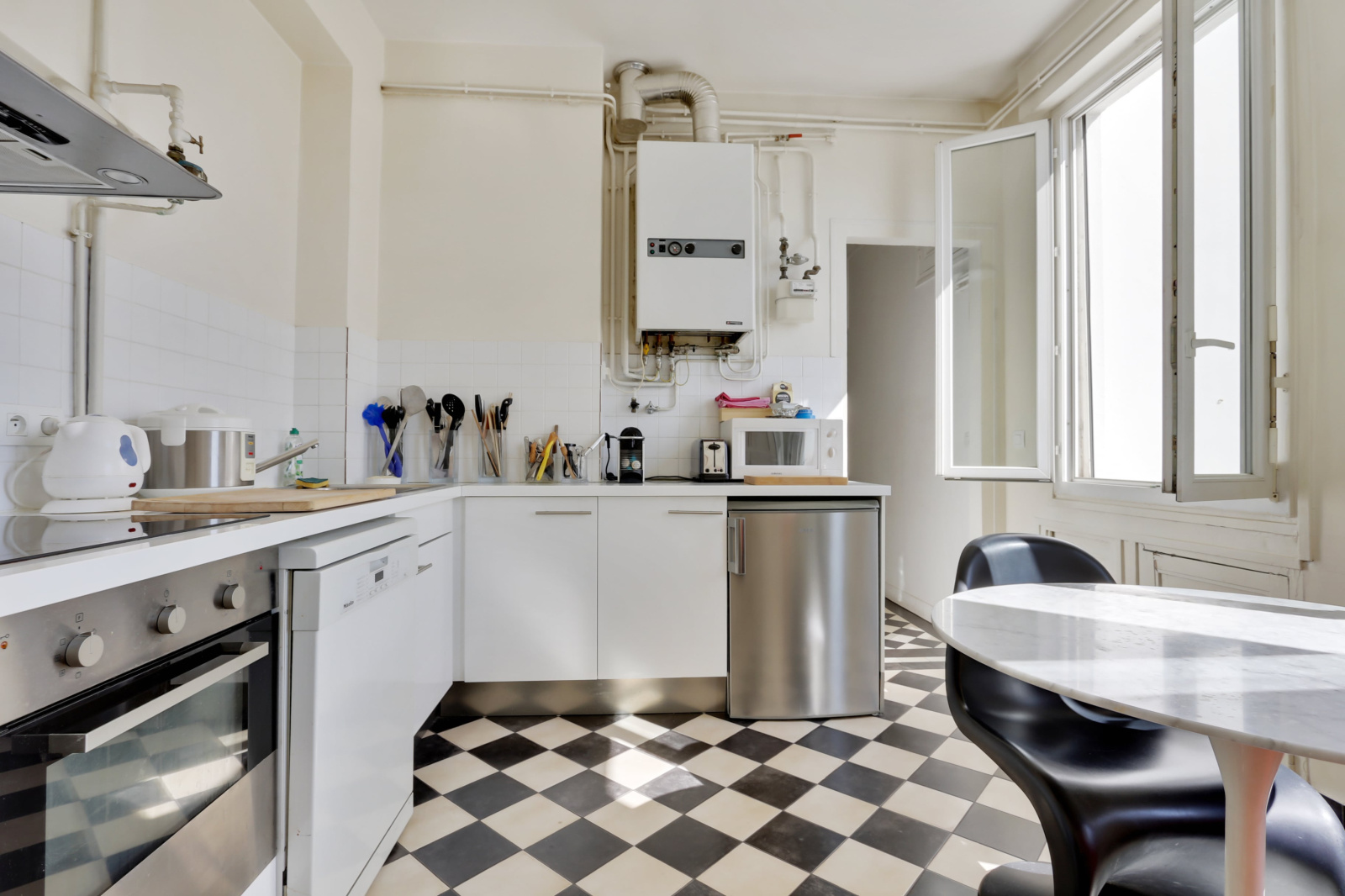 Paris (75018)Paris 18ème - Butte Montmartre - Rare. Au dernier étage d’un immeuble Art Déco de très grand standing, très bel appartement avec terrasse jouissant d’une superbe vue sur le Sacré-Cœur, la Tour Eiffel et Paris. Il se compose d’un double séjour avec cheminée et espace salle à manger, d’une cuisine séparée dînatoire, d’une salle de bains et de WC indépendants. Sur le toit, une terrasse de 30 m² offrant une vue panoramique accessible par un escalier. Cet appartement en parfait état a parfaitement conservé les éléments d'origine. Paris Vendôme Luxury - International Realty.