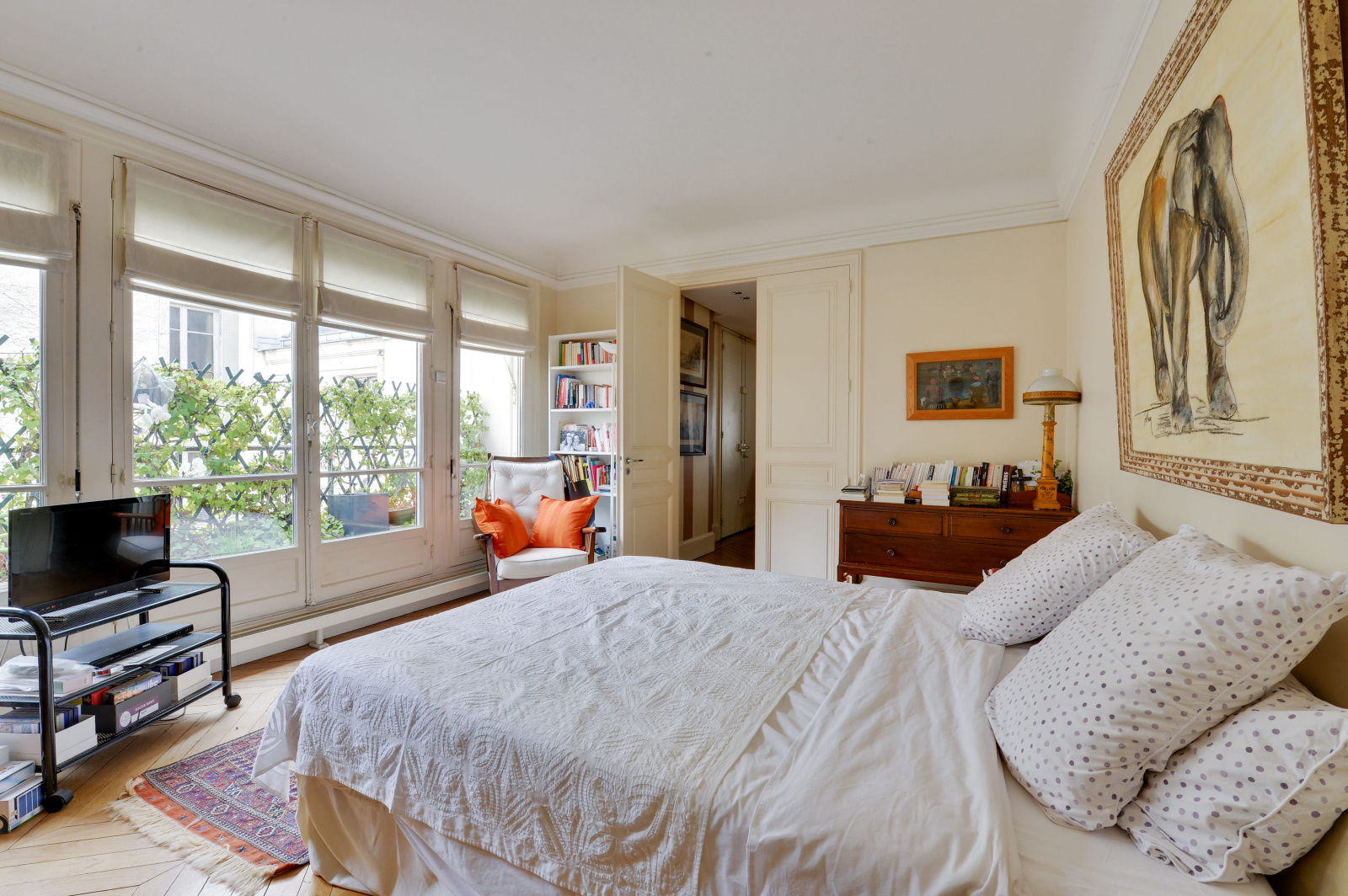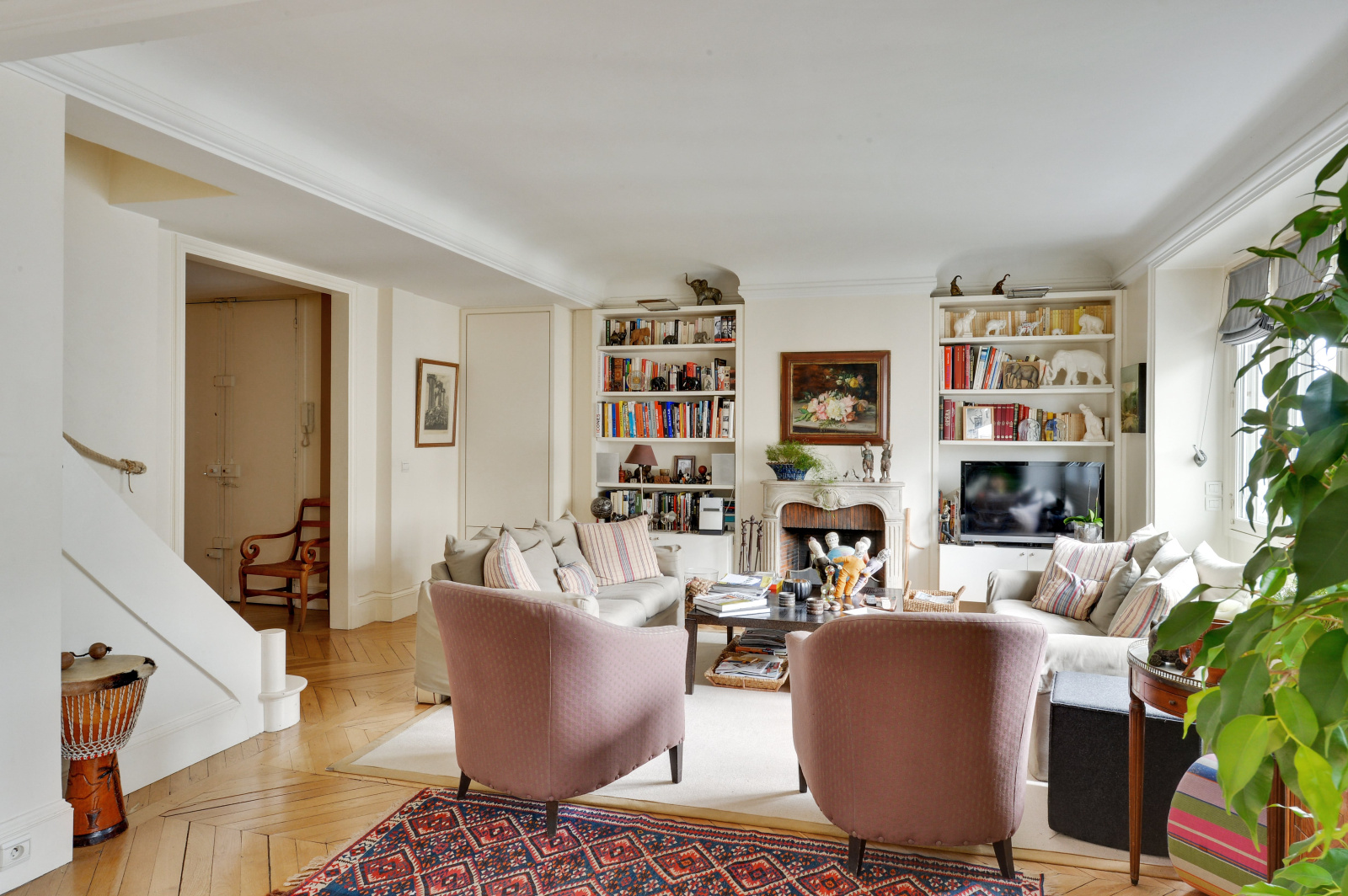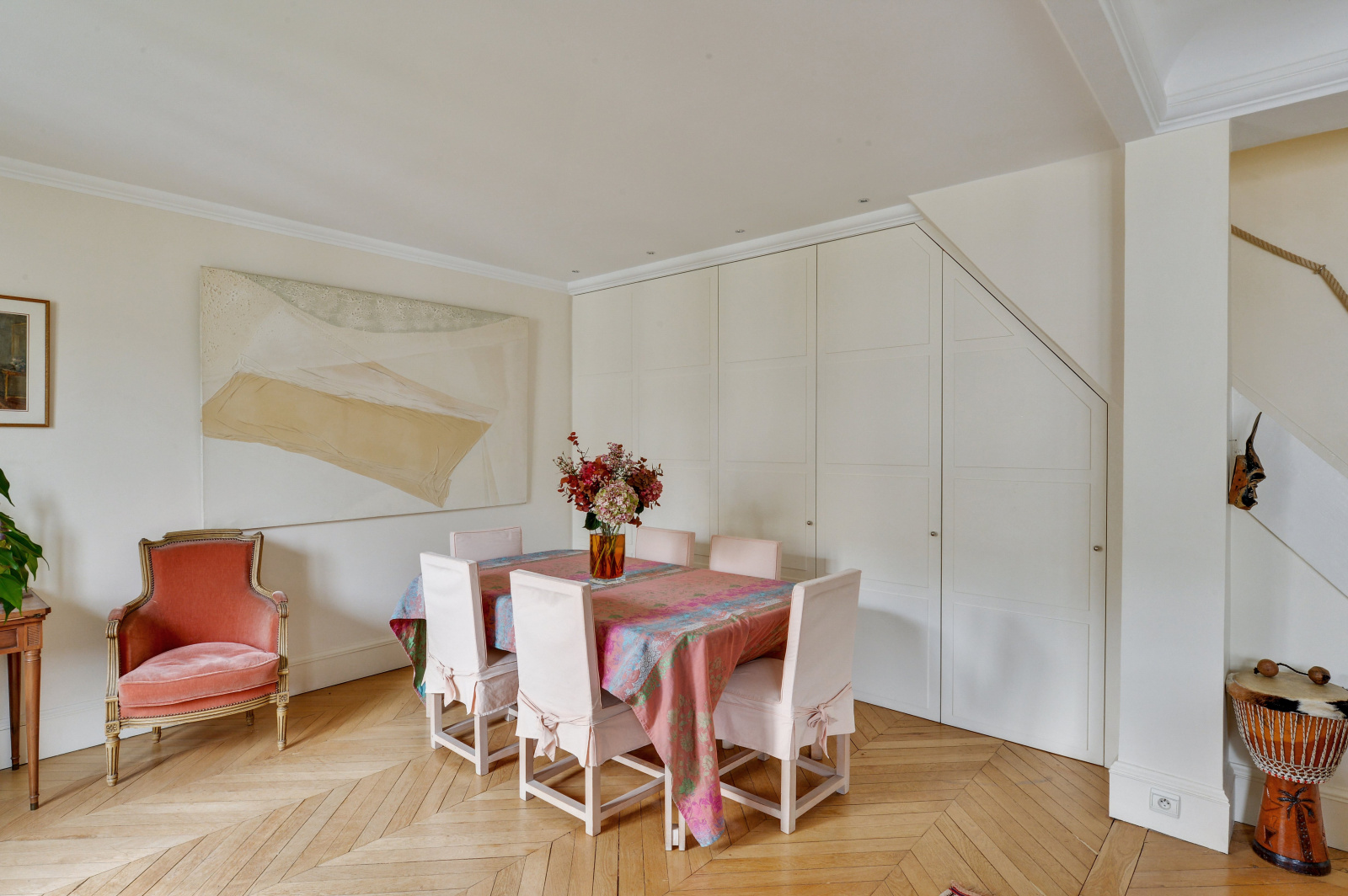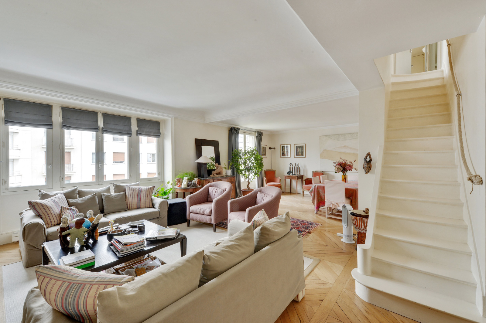 Paris (75016)Paris 16ème – La Muette – OCDE. Sectorisation Janson de Sailly. Dans un immeuble haussmannien de très grand standing avec ascenseur, aux deux derniers étages, appartement 3 pièces en duplex d’une surface de 121 m². Il se compose au premier niveau (6ème étage) d’une entrée distribuant un vaste double séjour avec salle à manger bénéficiant d’une cheminée et ouvrant sur un balcon, d’une cuisine séparée aménagée et e entièrement équipée, d’une première chambre avec balcon, d’une salle de bains, d’un dressing et d’un WC indépendant. Le second niveau (7ème étage et dernier étage) accessible par un bel escalier comprend une vaste chambre avec sa salle d’eau et ses WC séparés. Cet appartement en bon état bénéficie d’une agréable vue dégagée. Il a conservé le cachet de l’ancien tel que son parquet, ses moulures et ses cheminées. Une cave et un grenier complètent ce bien. Paris Vendôme Luxury - International Realty.