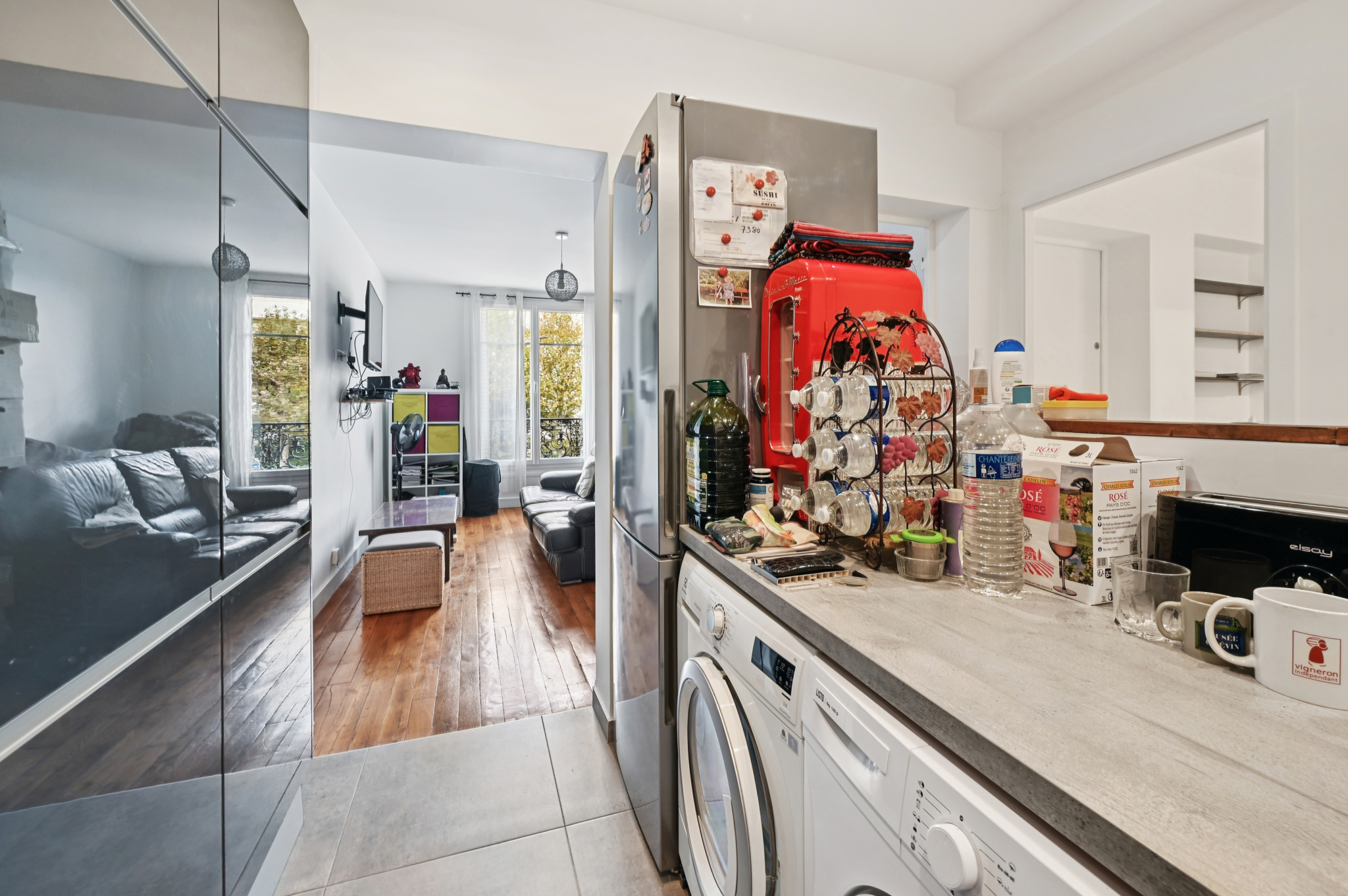 L’appartement dispose de deux chambres, dont l’une avec mezzanine permettant d’aménager deux espaces de couchage. Il comprend également des toilettes séparées, une salle d’eau rénovée avec soin et un séjour lumineux ouvrant sur une cuisine contemporaine, pensée pour conjuguer convivialité et praticité.